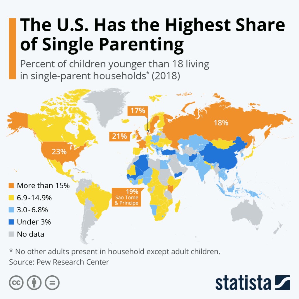 - Father-only households have been on the rise in recent years, rising to over 8% of U.S households, up from approximately 1% in 1960.